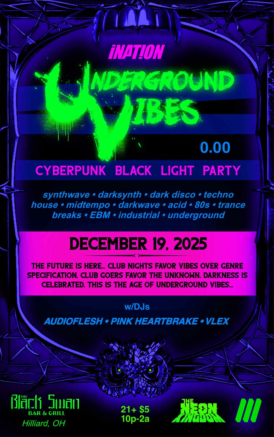 Join us for our soft launch of Underground Vibes; a monthly Cyberpunk Black Light Party, where darkness is explored and embraced through pulsating EBM basslines; techno grooves; decadent dark disco; synthwave soundscapes and brooding midtempo akin to a John Wick club scene. Dress for an interactive UV dance experience or come as you are. All that we ask, is that you bring the darker version of yourselves...